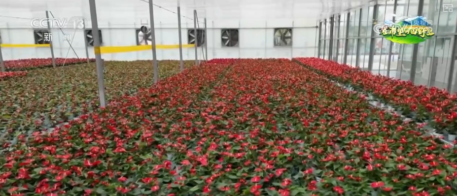 正在这处花草内,苗床上,红掌花争相绽放;苗床下,水流正在托盘中有纪律地崎岖。这是一套“潮汐灌溉系统”,能够实现水肥精准调控,让花草按照本身需要“喝水”“吃饭”。工做人员打开手机里的聪慧农业数字化办理软件,就能够查看大棚的环境。