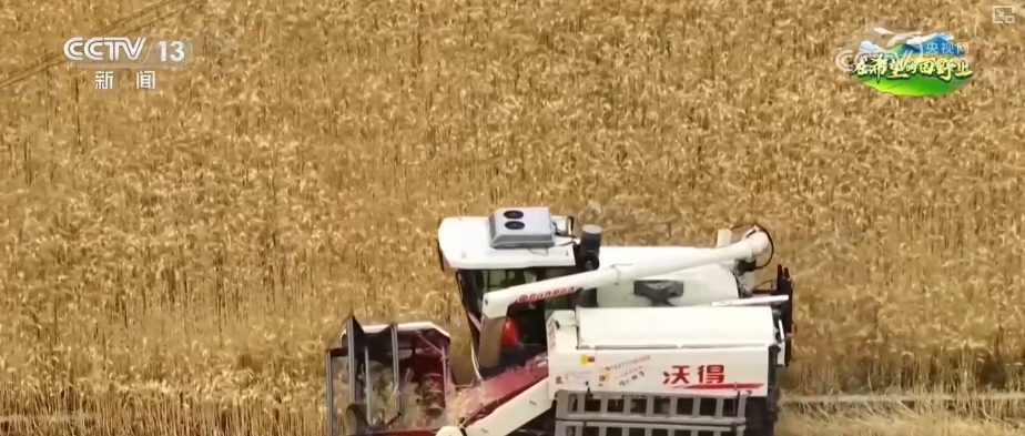 正在河池市凤山县一处1800亩的麦田里,这里试种的小麦曾经成熟,轻飘飘的麦穗将麦秆压弯了腰。收割机正正在麦田间穿越,加紧收割功课。