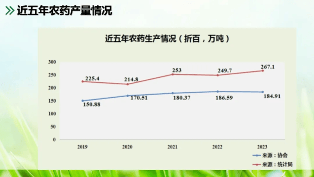 2014-2019 年,我国通过地盘、环保等政策办法严酷节制资本华侈、“三废”排放量大、污染严沉的农药新减产能,能耗高、手艺程度低、污染物处置难的农药产物的出产转移,加速掉队产能裁减。期间我国农药原药产量下滑,2020年以来,跟着满脚复产前提企业数量的添加和新产能逐渐,农药全体供应好转。2021-2022年,受疫情影响,农药企业开工率不脚,农药供无限,叠加上逛原材料跌价,最终农药价钱大幅上涨带动农药市场进入高景气阶段。2023 年以来,跟着新冠疫情管控终结,市场预期经济强劲反弹,农药行业投资再次兴起,农药产物进入新一轮产能扩张,热点产物规划投建产能持续增加。按照监测,2021-2023前三季度国内农药行业新减产能杀虫剂 13。94万吨/年、杀菌剂 17。84万吨/年、除草剂 24。21万吨/年、两头体 113。5万吨/年以及制剂 53。64 万吨/年。投资最热品种包罗除草剂草铵膦(精草铵膦)、烯草酮;杀虫剂氯虫苯甲酰胺、啶虫脒和联苯菊酯;杀菌剂丙硫菌唑、吡唑醚菌酯。规模化产能集中导致阶段性供给过剩,企业合作激烈。