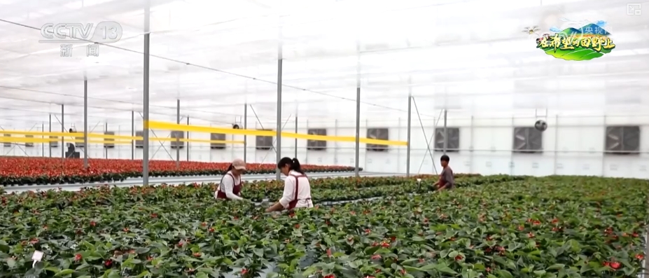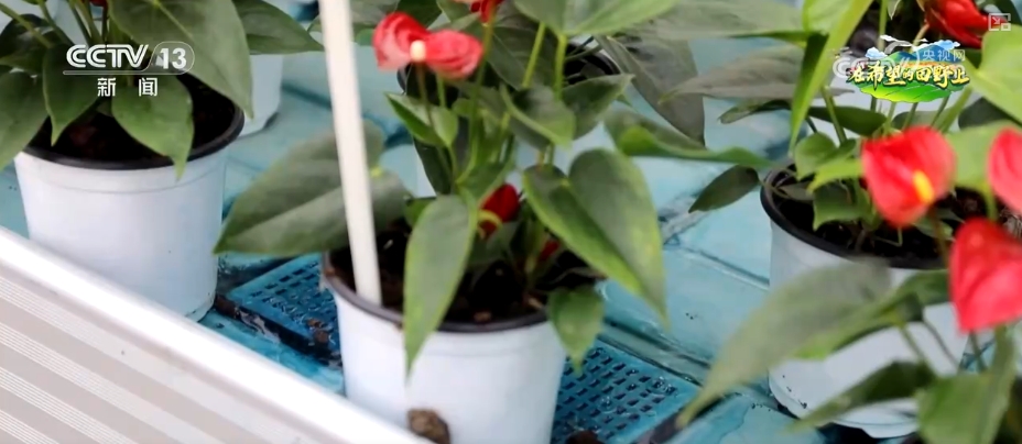 正在这处花草内,苗床上,红掌花争相绽放;苗床下,水流正在托盘中有纪律地崎岖。这是一套“潮汐灌溉系统”,能够实现水肥精准调控,让花草按照本身需要“喝水”“吃饭”。工做人员打开手机里的聪慧农业数字化办理软件,就能够查看大棚的环境。