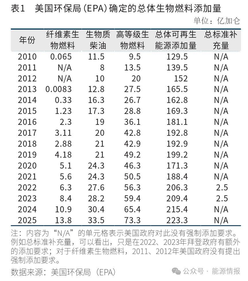 美国按照《洁净空气法案》(CAA)、《能源政策法案》(EPA2005)、《能源和平安法案》(EISA2007)等一系列法案,设立了可再生燃料尺度项目(RFS,Renewable Fuel Standard Program)。可再生燃料尺度项目是一项的政策框架,要求全国范畴内采用特定命量的可再生能源去替代必然数量的道交通、取暖或航空燃料(见表1)。